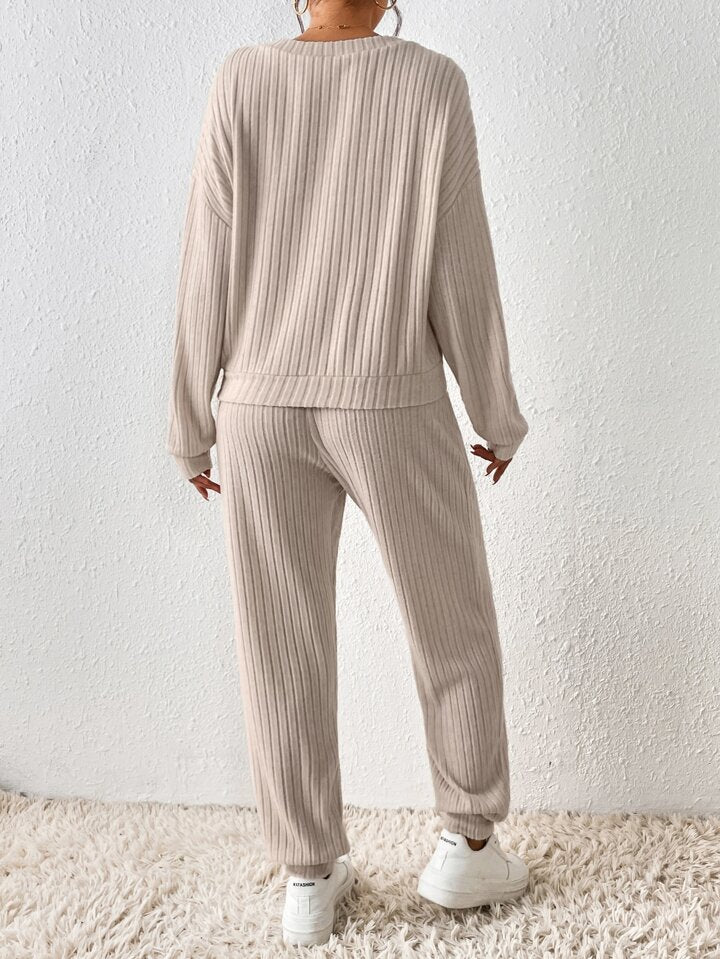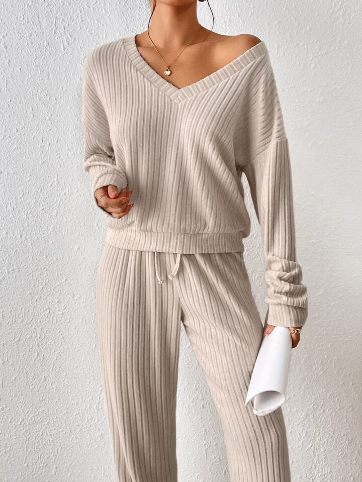 This khaki V-neck two piece set is perfect for casual outings and day-to-day wear. Crafted with a comfortable cotton-polyester blend fabric, this stylish set offers breathability and comfort for all-day wear. The plain design, combined with the V-neckline, lends a timeless look to the ensemble.